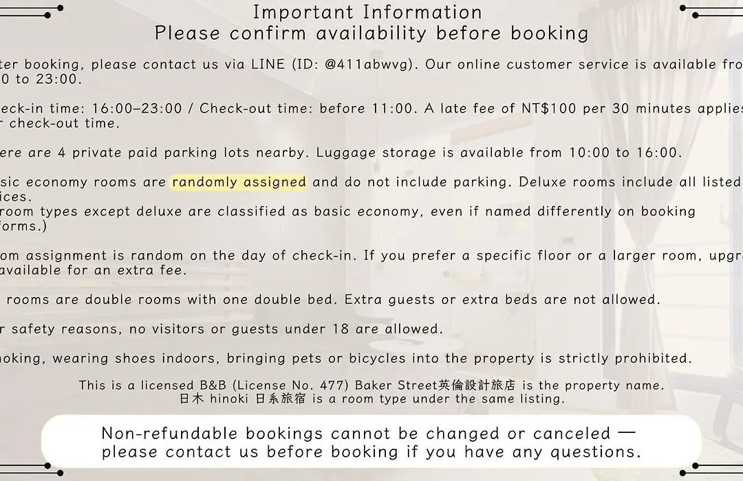 يقع بيت شباب هينوكي مانشين تاينان على بعد حوالي 20 دقيقة مشياً على الأقدام من متنزه تاينان، ويوفّر الواي فاي في جميع أنحاء الملكية وموقف السيارات.